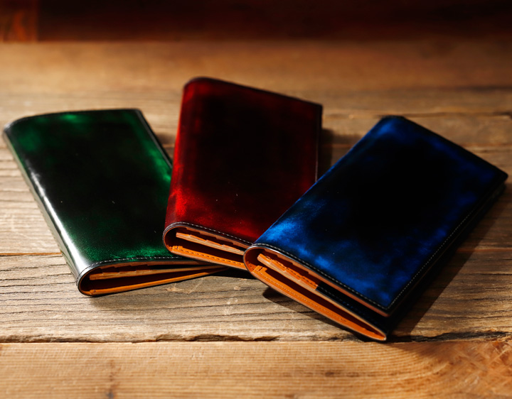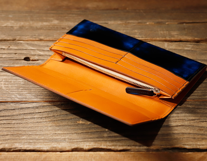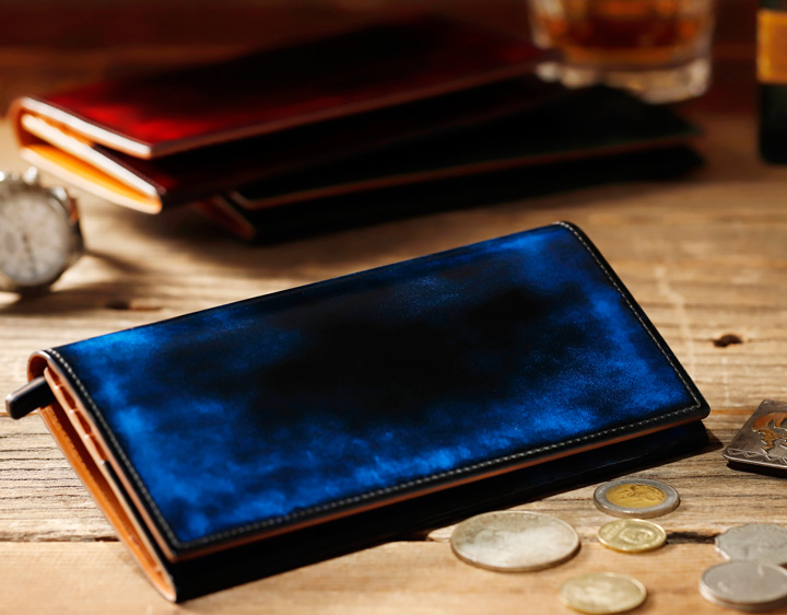 ひとつひとつ手磨きでグラデーション 長財布(小銭入れなし)