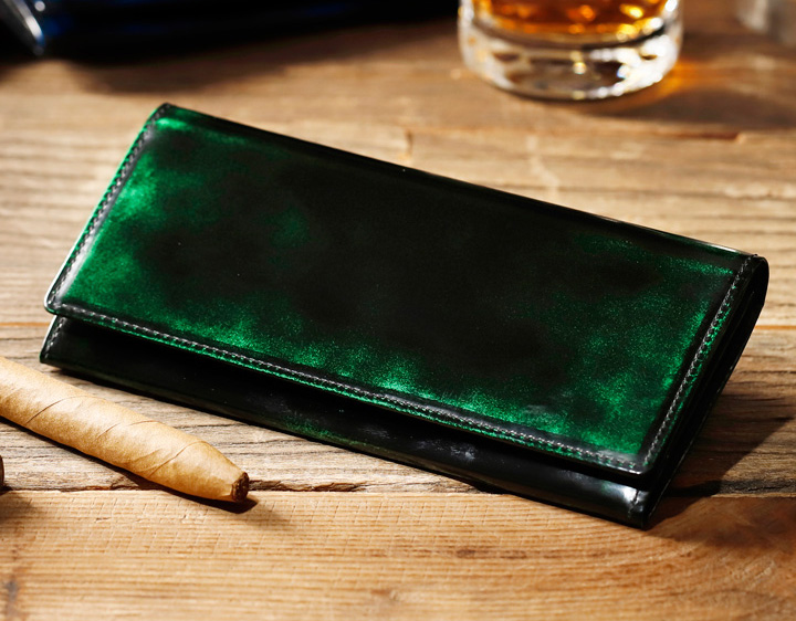 ひとつひとつ手磨きでグラデーション 長財布(小銭入れなし)