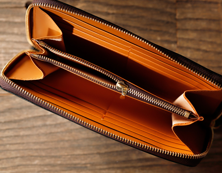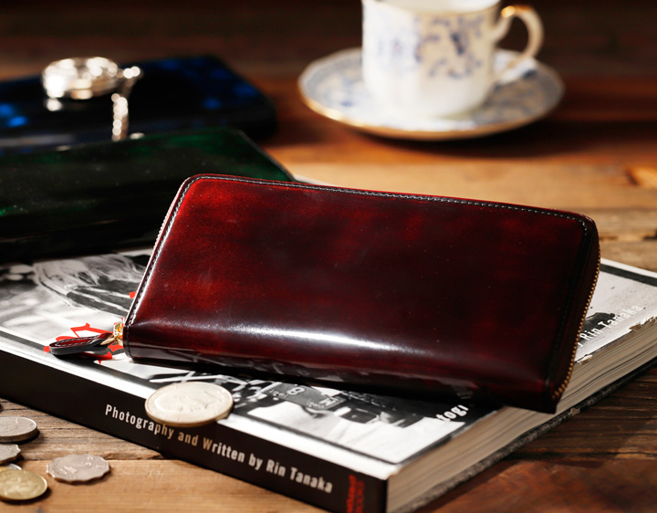 ひとつひとつ手磨きでグラデーション ラウンドファスナー長財布