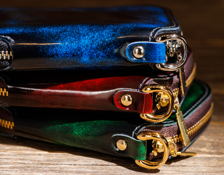 上質な牛キップを使い製品にしてから、一つ一つ手磨きでグラデーションをつけたこだわりのシリーズ