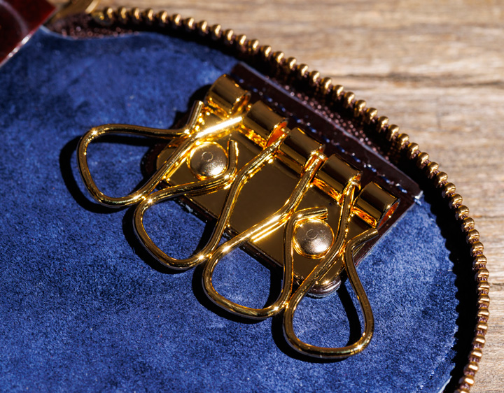 エルクのようなしなやかとは違う、エナメルのような高級感のある光沢のレザーのスマートキーケースは、カジュアルなシーンだけでなくビジネスシーンにも!