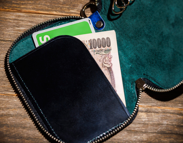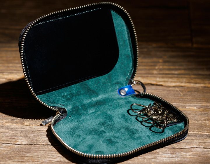 ブルーの色味がとても綺麗で、ひと目で気に入りました。サイズも2個のスマートキーがピッタリ収納でき、ジャストサイズでした。 毎日使うのが楽しみになるキーケースです。