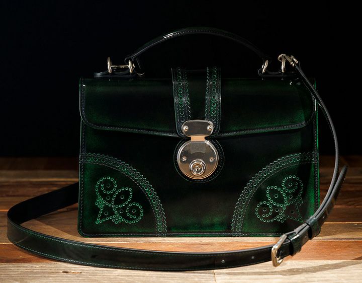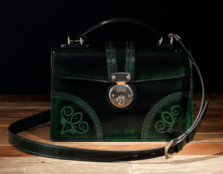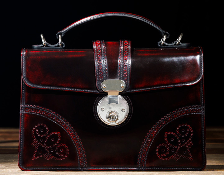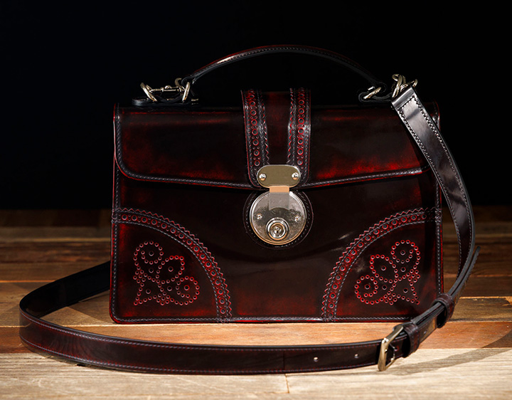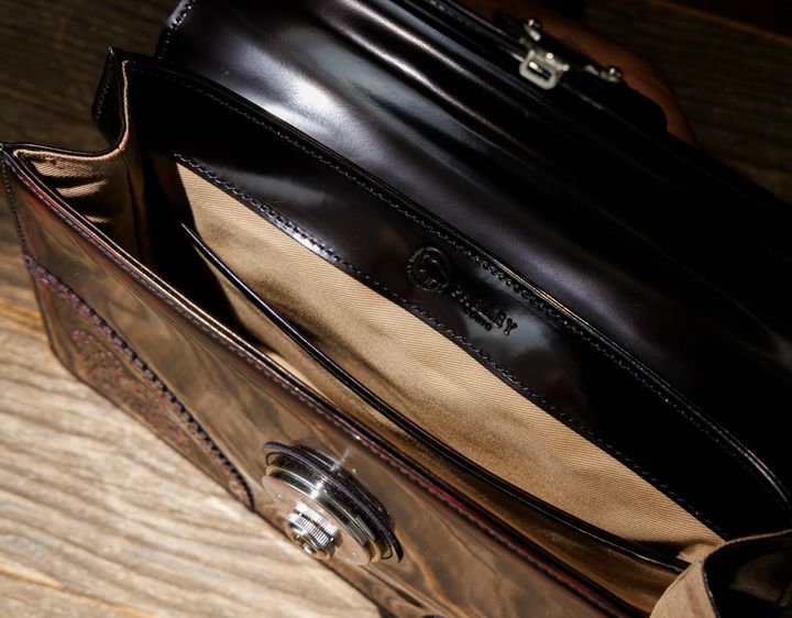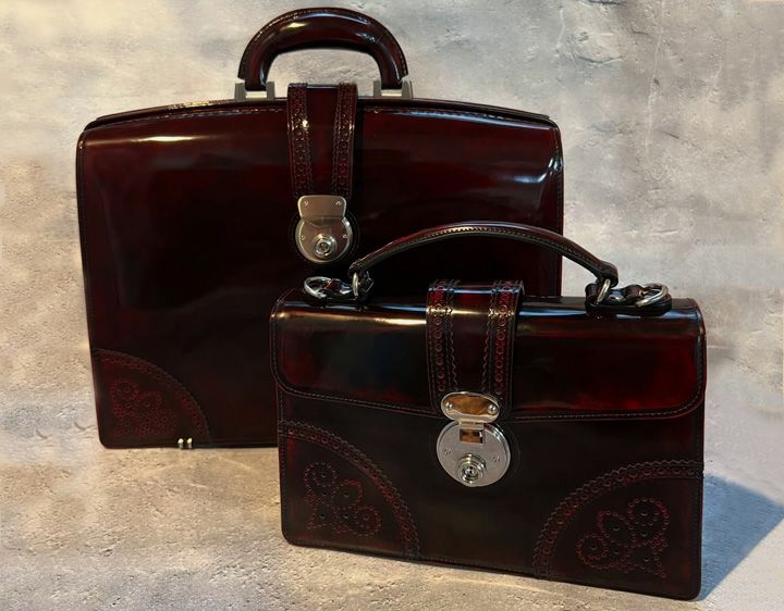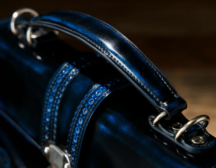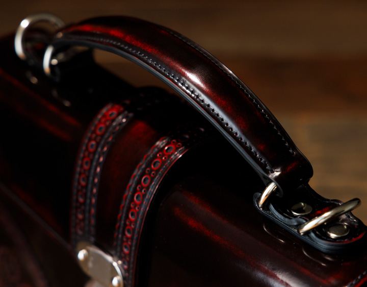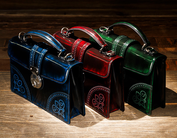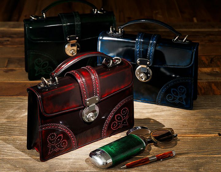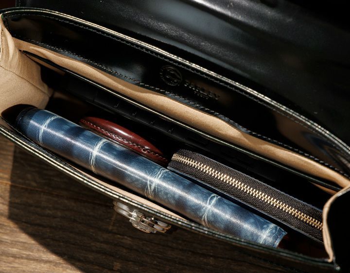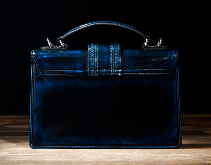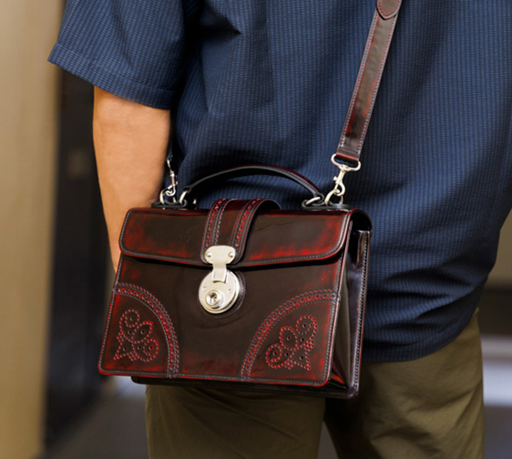 年齢性別を問わずご使用いただけるデザインで ショルダーベルト付きの2wayタイプとなっています コンパクトながら重量感があり、手磨きならではの奥行が魅力です