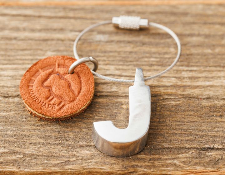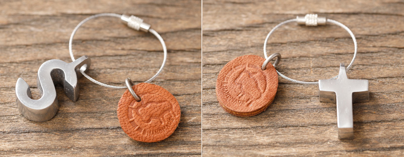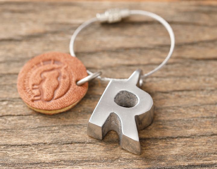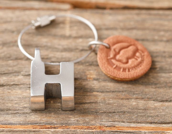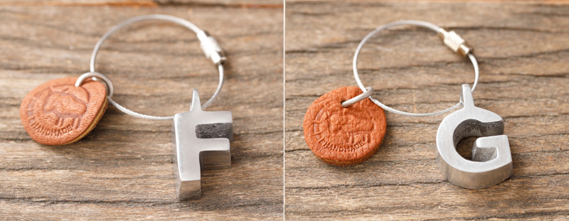 素材:本体=フィンランドエルク(鹿革) アルミアルファベット 丸革の直径:2cm 重さ:15g(革の厚み等により多少の誤差あり)