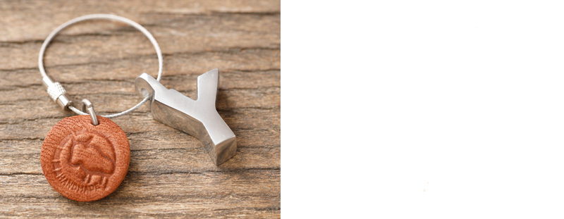 友達や恋人とのお揃いやプレゼントとしてオススメな アルファベットチャームは、エルク革で作成したパーリィーのロゴが アクセントとなっています。
