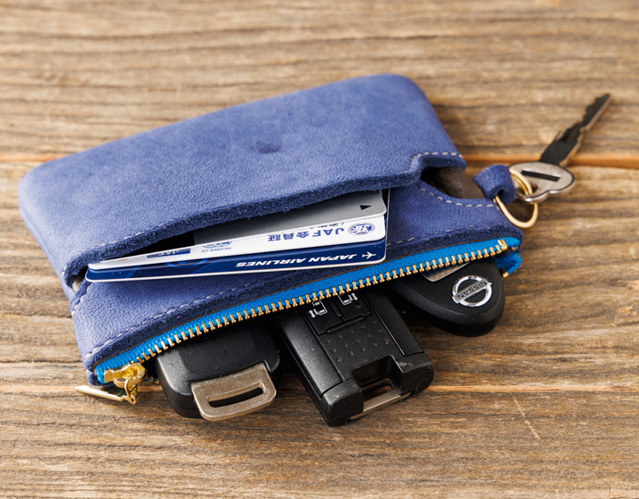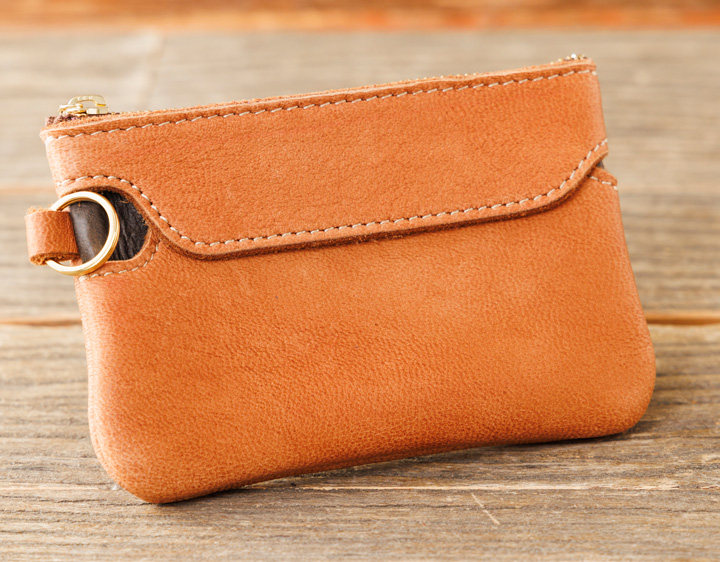 手のひらサイズながら鍵や小物をしっかり収納できるキーリング付きミニポーチ