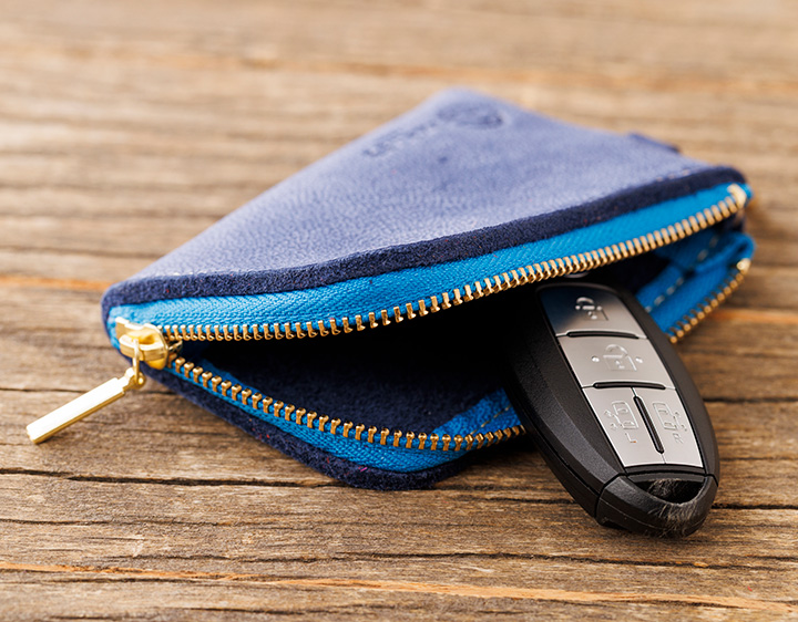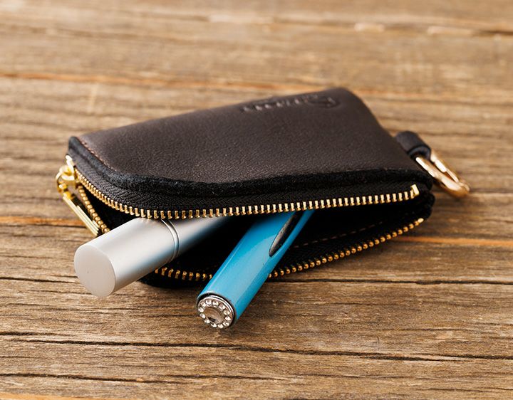 手のひらにすっぽり収まるコンパクトなサイズながら、コインやカード・鍵・リップなど小物をスッキリ収納。 L字ファスナーで大きく開くので中身が見やすく取り出しもスムーズ。 かさばらない薄型のフォルムはバッグの中でも場所を取らず、ポケットにも収まりやすいアイテムです。 カラビナがついているので、バッグやベルトループに付けることもできます。