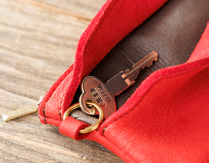 手のひらサイズながら鍵や小物をしっかり収納できるキーリング付きミニポーチ