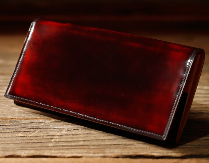 磨き上げたコバと美しいツヤが魅力の小銭入れ付き長財布。