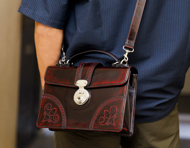 年齢性別を問わずご使用いただけるデザインで ショルダーベルト付きの2wayタイプとなっています コンパクトながら重量感があり、手磨きならではの奥行が魅力です