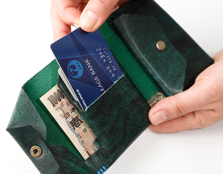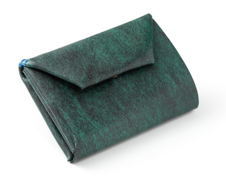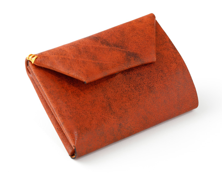 一枚の革がパタパタと折り紙のように組み立てられたコンパクト財布。 お札、小銭、カード2枚が収納できるのでメイン財布としても大活躍できます。 ジーンズの前ポケットに入れても快適です。