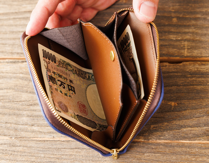 ファスナー開閉により中身をしっかり守り、お札やカード、小銭をスマートに収納可能。 バッグやポケットにすっぽり収まる使い勝手の良いサイズ感が魅力です。