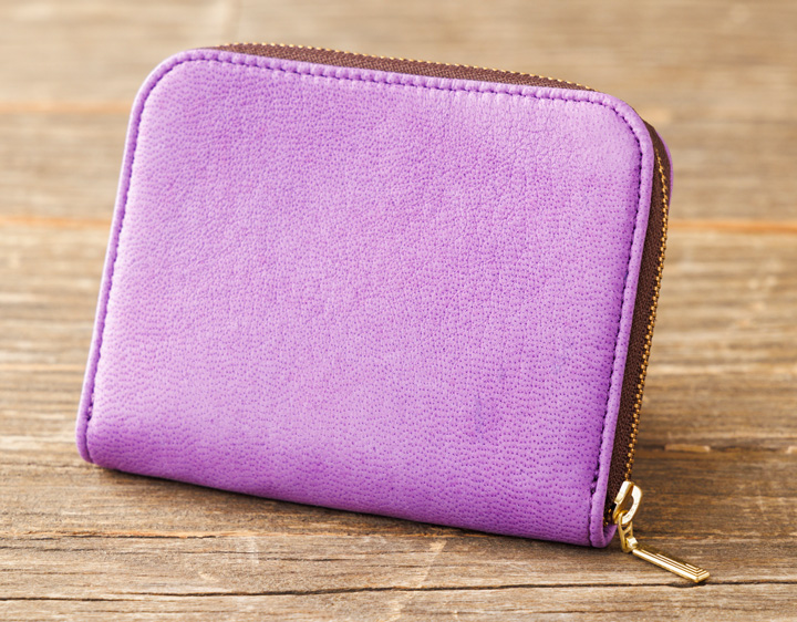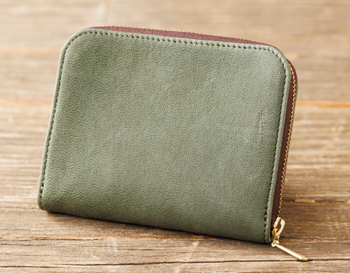 コンパクトながらしっかり収納できるラウンドファスナー付き二つ折り財布