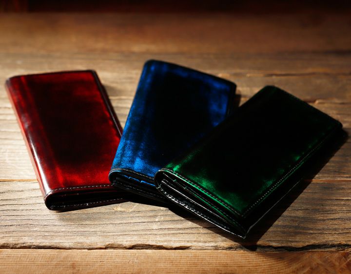 ひとつひとつ手磨きでグラデーション 長財布(小銭入れなし)