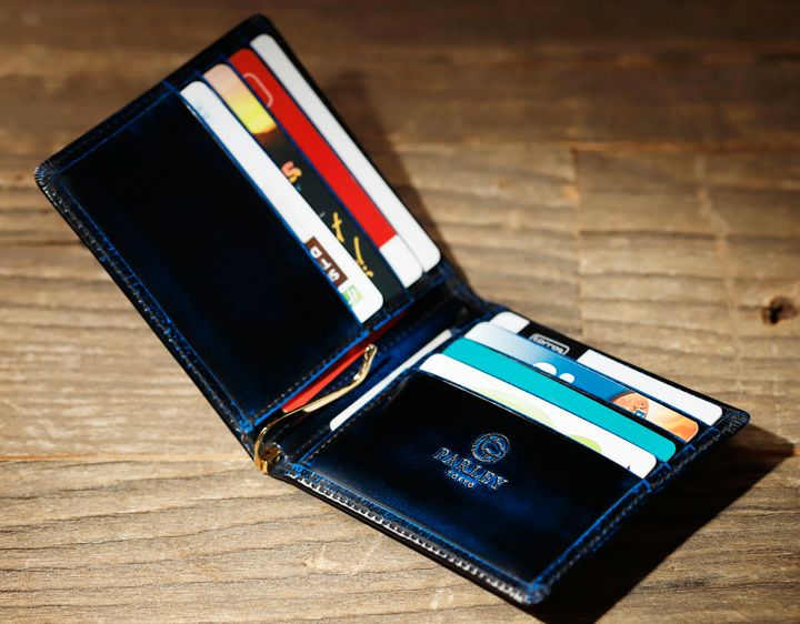 光沢を放つ革と金具が美しいひとつ上の大人の財布マネークリップ。