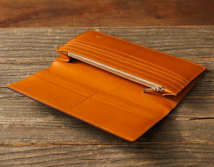 W:19.0cm / H:9.5cm / D:2.5cm 重さ:135g(革の厚み等により多少の誤差あり) 素材:牛革 仕様:カード12、小銭入れ1、札入れ2、マルチポケット2