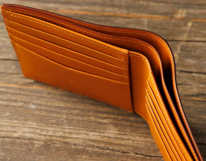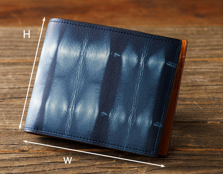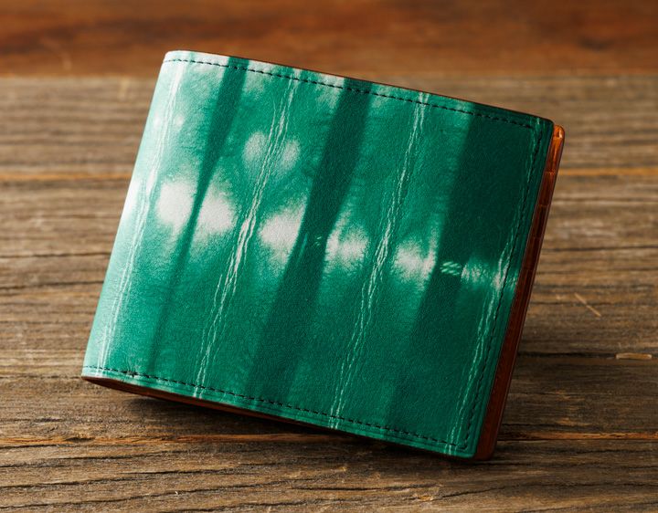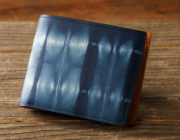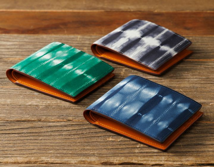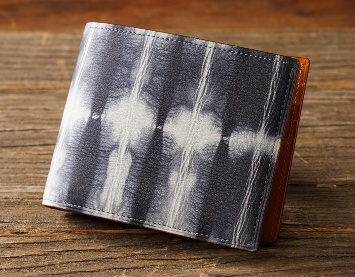 牛革に伝統的な「絞り染め」の鮮やかな発色と模様が目を引く二つ折り財布です。 小銭入れをなくすことで、薄型・軽量に仕上げました。 カードとお札をスマートに持ち歩けます。ポケットに収まりやすく、ビジネスシーンにも馴染む二つ折り財布です。