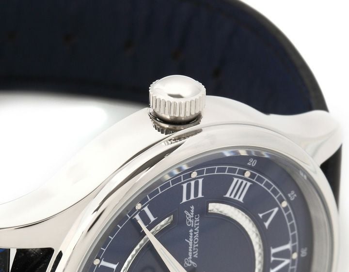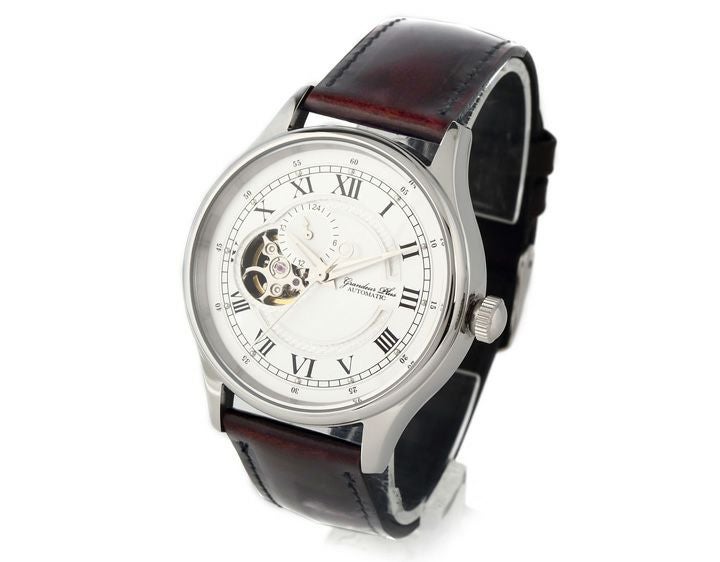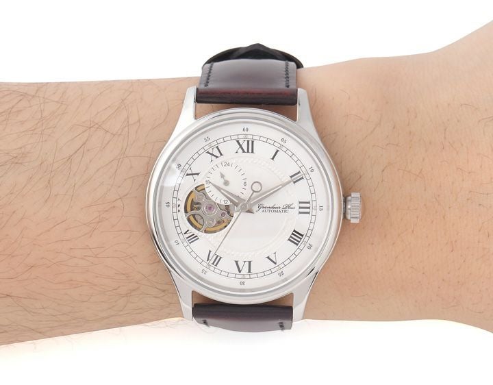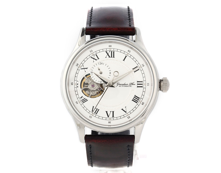 バンド幅:1.2cm 適応手首周り:12.5cm~20cm 材質:時計本体・バックル:ステンレス バンド:牛革キップ(国内縫製) 仕様:耐磁性、耐ショック性を備えたSll 日本製24石自動巻き3針ムーブメント 精度:5気圧防水、スケルトンダイアル、平均目差-20秒~+40秒、10時位置に24時間時計 バンドにはクラシックレザー、秒針を止めて時間合わせが出来るハック機能付き 付属品:箱、取扱証明書、保証書